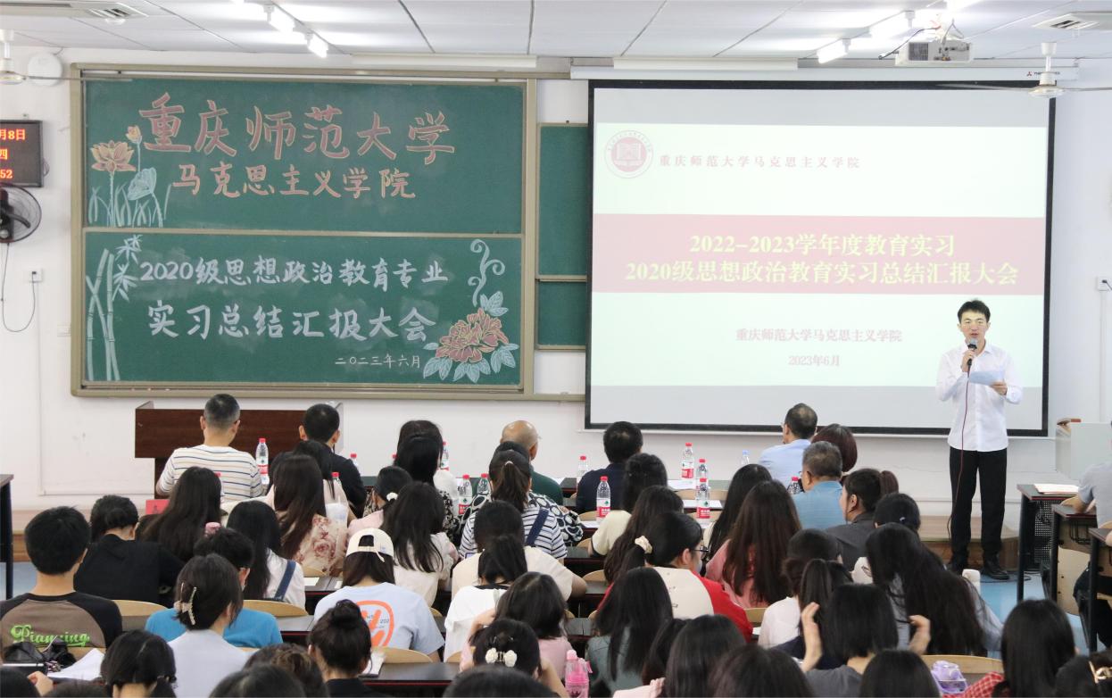 为展示2020级思想政治教育专业实习生实习成果,进一步夯实其学科教学实践能力,切实提升马克思主义学院师范生培养质量和学院教育实习质量,2023年6月8日15时30分,M88马克思主义学院于砺志楼2402教室召开2020级思想政治教育实习总结汇报大会。马克思主义学院党委书记李晓燕、政教系副主任郑瑜副教授、实习领导小组全体教师出席本次会议,2020级全体实习生积极参与本次会议。本次大会由2020级本科生王磊主持。