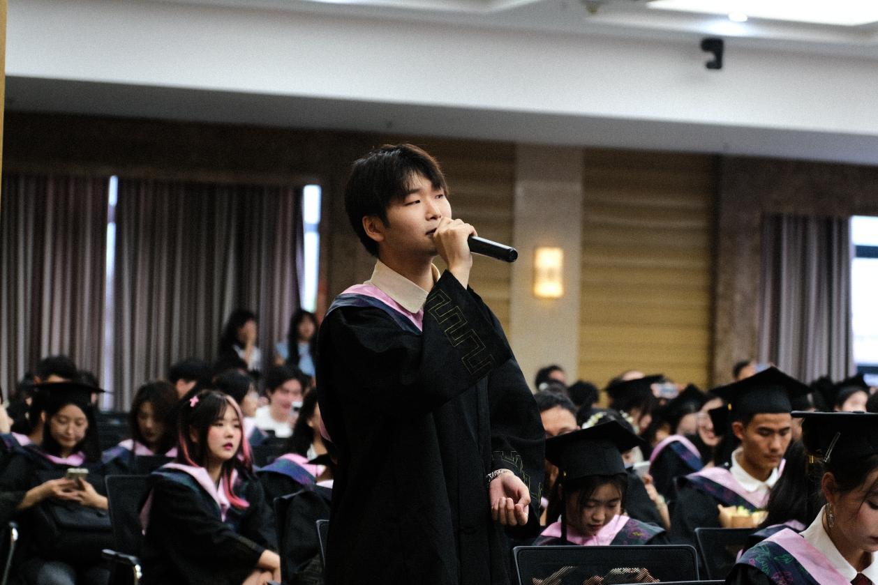相逢一见太匆匆,校内繁花几度红。李双艳同学回望过去,书声琅琅,墨香萦绕,感谢学校和老师们的培养,希望大家用行动和奋斗书写青年人的华彩篇章。紧接着她表达了对学校的感恩和祝福,也祝愿全体毕业生青春不悔,毕业万岁!