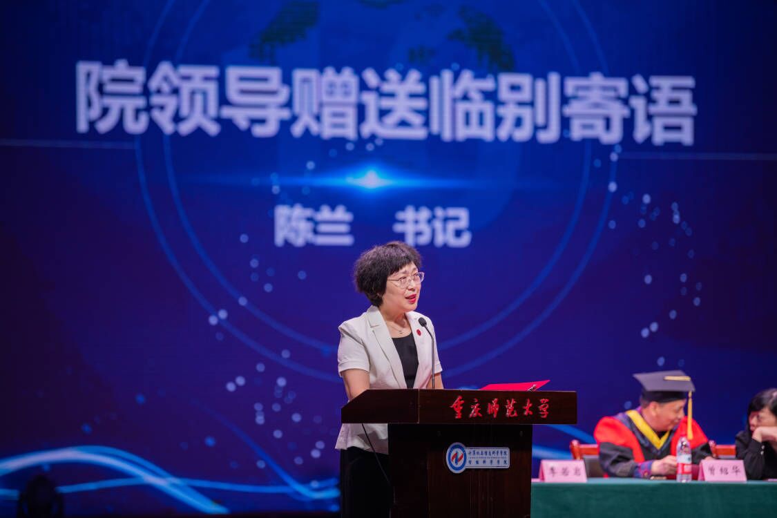 2023届研究生代表潘菊同学进行发言,她表示同学们应与时代同频共振,在挑战中塑造理想信仰,在奋斗中共筑计信精神,书写了新时代青年勇挑重担的青春诗篇。2023届本科生代表成天浩同学鼓励计信学子们在新时代改革开放的广阔天地中勇敢绽放,一定会在各行各业发光发热。教师代表罗凌老师将“祝贺”、“爱护”、“期待”三个词送以全体毕业生表达了美好期盼和良好祝愿。