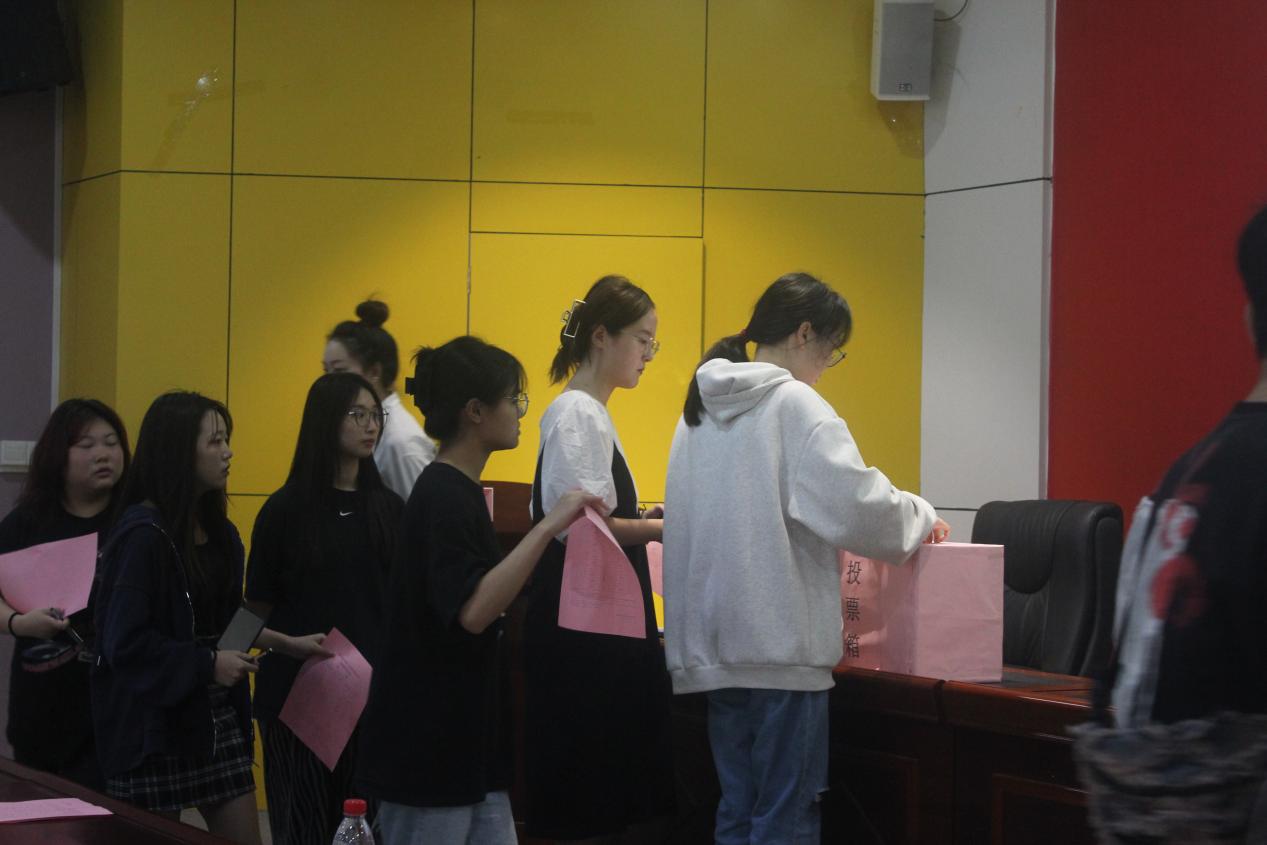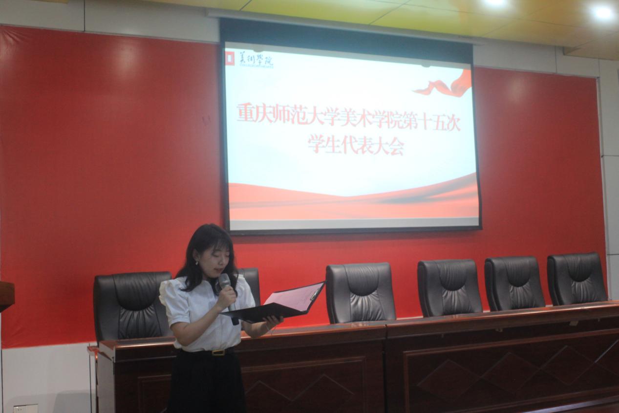 此次选举大会由刘铭玉同学主持,美术学院团学会干部以及各班级学生代表参加。大会选举分为三个环节:一是刘铭玉同学介绍各学生代表候选人;二是分团委书记余艳婷老师介绍学生代表组成的人员要求;三是学生代表投票。