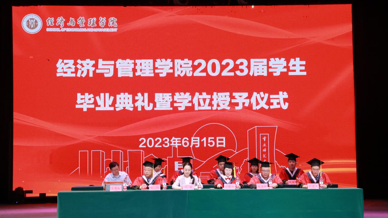 昔日纷呈,四年不过刹那;未来已至,筑梦扬帆起航。2023年6月15日上午,经济与管理学院2023届学生毕业典礼暨学位授予仪式在校友会堂演出厅隆重举行。经济与管理学院党委书记钟敏,执行院长、学位委员会主席郑景丽,副院长喻科、陈科宇,学位委员会委员,学院教职工代表及2023届毕业生参加典礼。毕业典礼由党委副书记李青松主持。