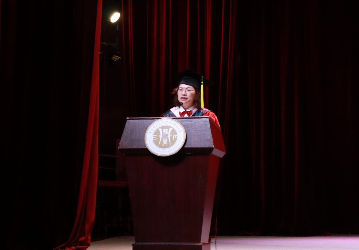 共话拳拳师者心,殷殷诉别桃李情。教授代表陈绍友教授深情寄语2023届全体毕业生,希望他们在未来的日子选择平和与沉淀、大气与作为、健康与友善,永葆赤子之心,砥砺使命担当。执行院长郑景丽教授发表致辞,她向圆满完成学业的2023届毕业生表示衷心的祝贺,同时对即将远航的毕业生们提出期望:一是厚植家国情怀,勇担使命,争做堪当民族复兴重任的时代新人;二是笃定目标,脚踏实地,勇于做难事,勤于做实事;三是终身学习,知行合一,保持旺盛的求知欲,用持续学习提高竞争力。拨穗正冠,学有所成。学位评定委员会成员为2023届全体毕业生拨穗正冠,颁发学位证书并合影留念,至此毕业典礼落下帷幕。
