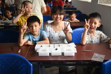 讲解完昆虫标本的制作步骤之后,小组队员对小朋友进行一对一的指导,使小朋友能够顺利完成制作。本次活动充分将大学所学知识带给社区儿童,让孩子们更加了解科学知识,对昆虫和植物知识的兴趣得到了提高,体会到自然科学的巨大魅力与吸引力。同时锻炼了孩子们的动手能力,为他们打造丰富多彩的暑假生活。