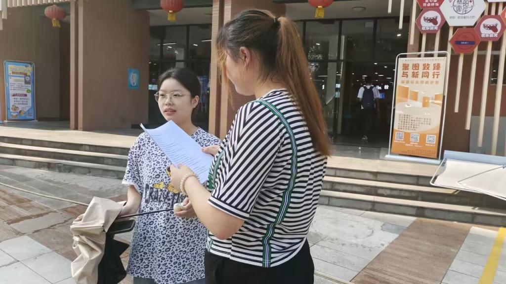 工作人员采取校内游园采访的方式,在食堂、图书馆门口向同学们科普“杜绝核污染”相关的知识,同时请同学们回答了工作人员准备的有关核污染知识的题目。在此次游园采访的过程中,同学们学习了相关知识并分享了自己对于保护环境该怎么做的见解。
