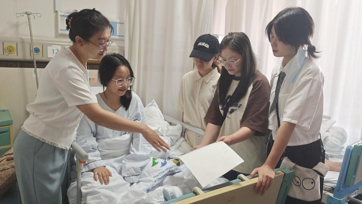 闫老师与同学们探望周敏同学