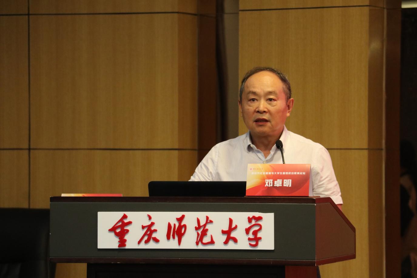 M88原党委书记邓卓明教授作了题为“当前社会思潮与思想政治教育研究的现状与前瞻”的主旨报告,报告系统梳理了该研究领域2022年以来取得的主要成果,并结合对相关研究呈现特征和演进趋势的分析,提出了进一步提升现实针对性,更好发挥研究成果资政育人作用的意见建议。