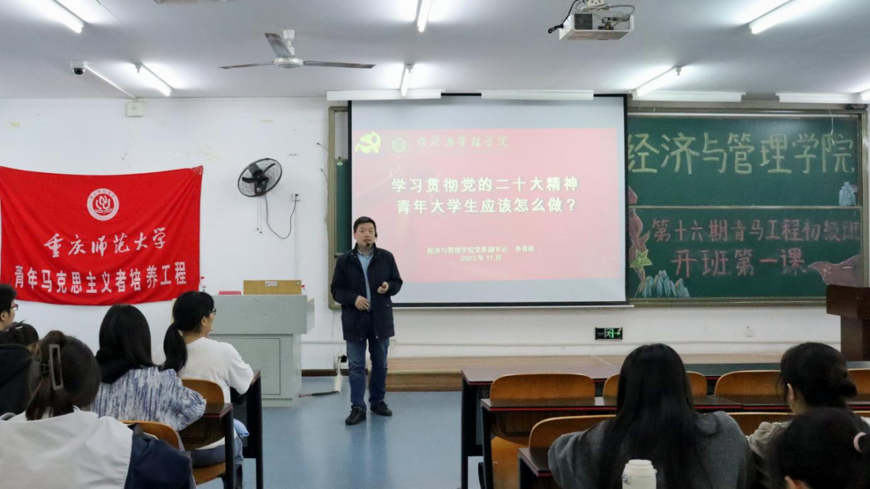 为培养具有坚定理想信念的青年马克思主义者,增强广大青年学生的家国情怀和使命担当,2023年11月9日,经济与管理学院于特教楼(励志楼)2213开展了第十六期“青马工程”初级班开班仪式暨开班第一课。经济与管理学院党委副书记李青松、辅导员唐艺珊、向薪蓉、刘炜婳参加本次活动。