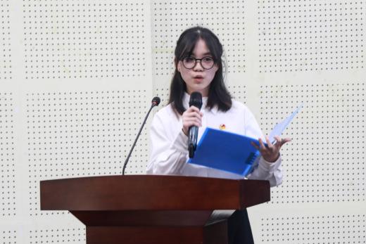随后,由第十三期青马初级班学员代表和第十三期青马中级班学员代表发言,初级班学员代表谭巧指出青马班提供了一个相遇有趣灵魂,碰撞先进思想的机会,同时也是一个深入学习马克思主义的平台,能够更好的增强政治觉悟、提高政治站位、培养社会责任感。青马班中级班学生代表谢航飞也同样指出加入青马班使自己倍感马克思主义的深邃和博大精深,将始终坚定爱国爱党的信仰,在以后的日子里仍然坚定不移跟党走,不断充实和完善自我。