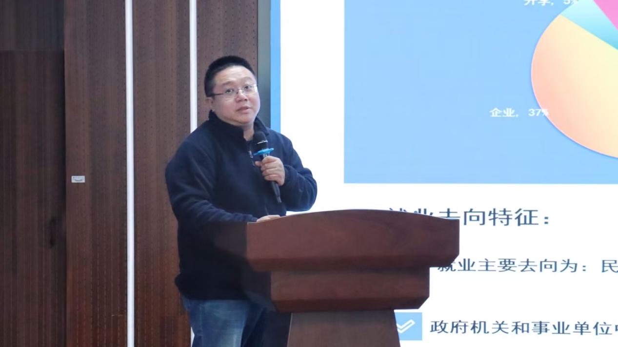 此外,党委副书记李青松围绕2023届本科毕业生就业状况、就业工作经验总结和2024届就业工作挑战及推进措施,具体总结汇报了近几年以来的各专业毕业生就业选择、就业类别和去向落实情况,概括提出了我院“未雨绸缪挖掘岗位资源,做实做细就业指导服务”的特色就业促进举措,系统展示了我院师生在推进落实各举措下所付出的努力、取得的成就和效果;并针对2024届本科毕业生概况和学院就业工作实际情况,分析了当前就业工作所面临的机遇与挑战,梳理了各阶段任务流程以及就业推进具体举措。