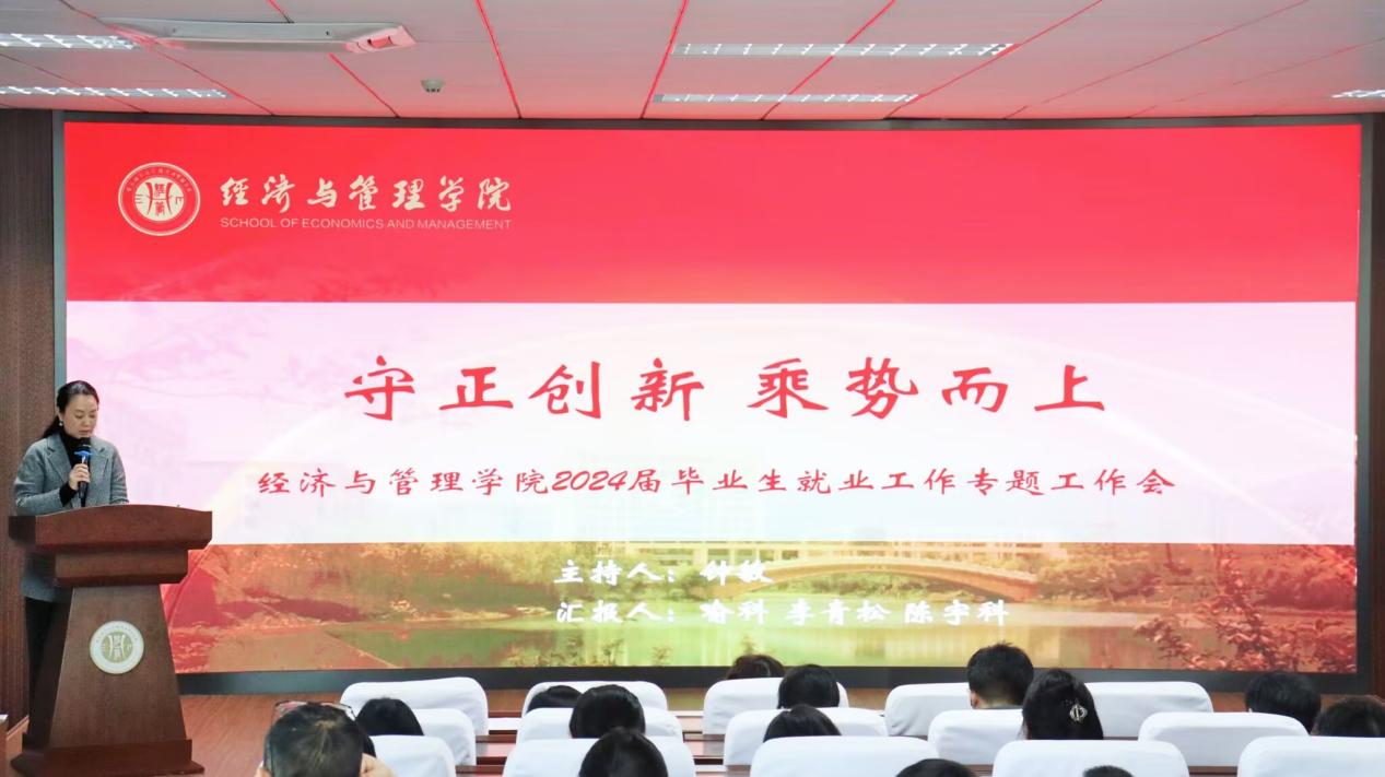 为总结2023届毕业生就业工作落实情况,提前谋划、充分动员并推动2024届毕业生就业工作,助力毕业生高质量充分就业,2023年12月7日,经济与管理学院于求是楼517报告厅顺利开展2023届本科就业工作总结及2024届工作部署会。我院党委书记钟敏、执行院长郑景丽、副院长喻科、副院长陈宇科、党委副书记李青松以及学院全体教职工参与会议。