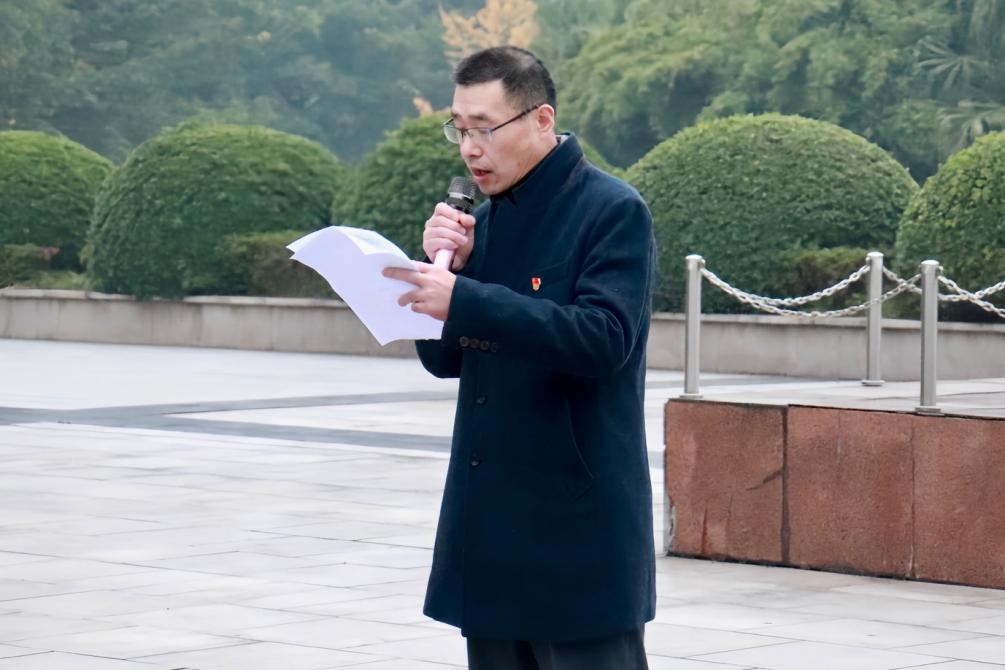 我院党委书记郑志坚作国旗下讲话。郑书记在讲话中指出:隆重举行升旗仪式暨“国旗下的入党誓词”主题党日活动,目的就是让我们师生时刻不忘“祖国和人民”,全体党员时刻牢记自己的“党员身份及入党誓词”,以最大的热情投入到强国建设的伟大洪流中。今天正值国家第十个“宪法日”及第五个“宪法宣传周”,希望我们一起努力,弘扬宪法精神,推动建设社会主义法治文化。随着学校加快打造“红岩先锋”变革型组织建设的推进,通过体系重构、流程再造,能力重塑,不断提高党建工作质量,必将为事业发展提供更加坚强政治保证。郑书记对全体同学提出三个希望:一要加快知识储备,强化能力培养,为走向社会奠定坚实的基础;二要加强个人修养,学会做人做事,将自己锤炼成信念坚定,敬业奉献的人;三要树立远大目标,不断追求卓越,成为中国特色社会主义现代化强国建设的栋梁之才。