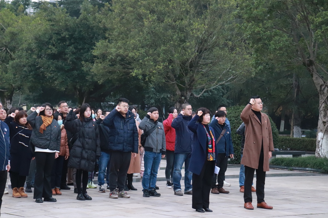 12月4日,我院在学校1号门前广场举行了升旗仪式暨“国旗下的入党誓词”主题党日活动。学院领导班子成员、教职工党员、学生党员、分团委·学生会干部及2023级全体同学参加本次活动,巴布亚新几内亚科技大学孔子学院中方院长张显及冬令营18名留学生到场观摩了升旗仪式。活动由党委副书记赵艳君主持。