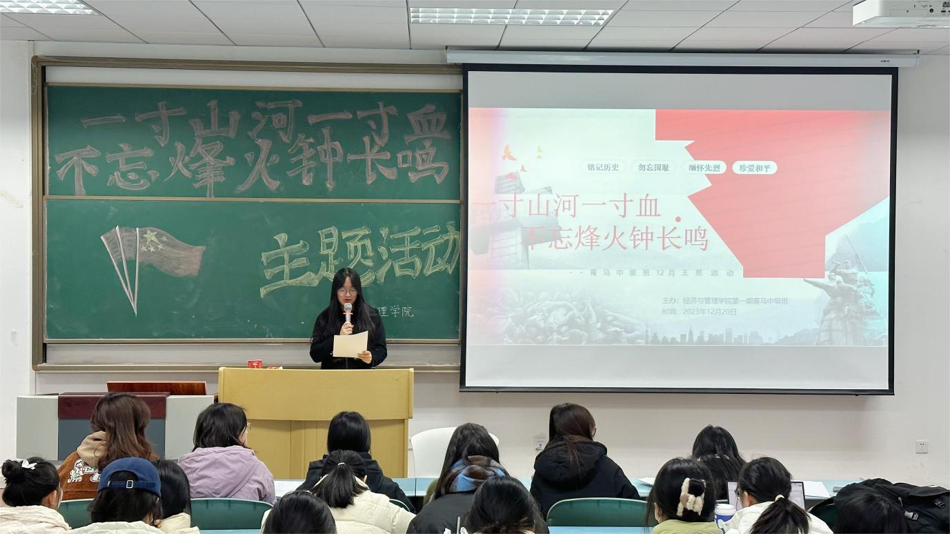 为引领广大师生铭记历史教训,勿忘艰难岁月,唤醒民族血脉,1220日,M88经济与管理学院于求是楼321开展“一寸山河一寸血,不忘烽火钟长鸣”青马中级班主题团日活动。经济与管理学院青马中级班全体成员参加。