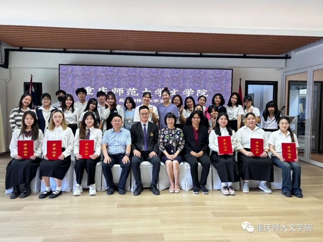 实训期间,团队成员参与泰国格乐大学尼山学堂的国际学术研讨会,并就国际中文教育的未来发展趋势、路径以及国际化语言教学等相关问题进行了广泛研讨。中泰师生也分享了教学经验,探讨中泰文化差异对中文教学的影响以及如何优化教学方法等问题。泰国格乐大学校长杨金泉先生亲切会见了实训团全体师生,还与大家共进午餐并合影留念。