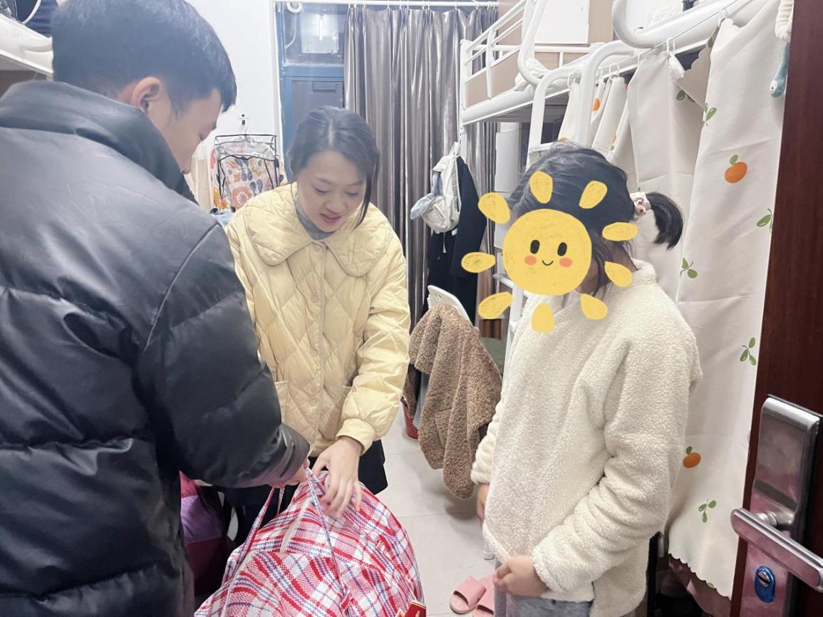 送一片暖意,温暖寒冬;送一份关爱,心中和煦。20231224日晚上8点,美术学院党委副书记丁睿老师带队学工办辅导员闫杰、李黎、张晓万祖毅、张云霄老师前往学生园区,为同学们发放爱心棉被。辅导员老师们将爱心棉被一一送到同学们手上,叮嘱同学们“有困难找辅导员”。同学们感受到学校和学院的温暖,纷纷表示:“做一个知恩、感恩、报恩的人会将这份关心与温暖传递给有需要的人。”