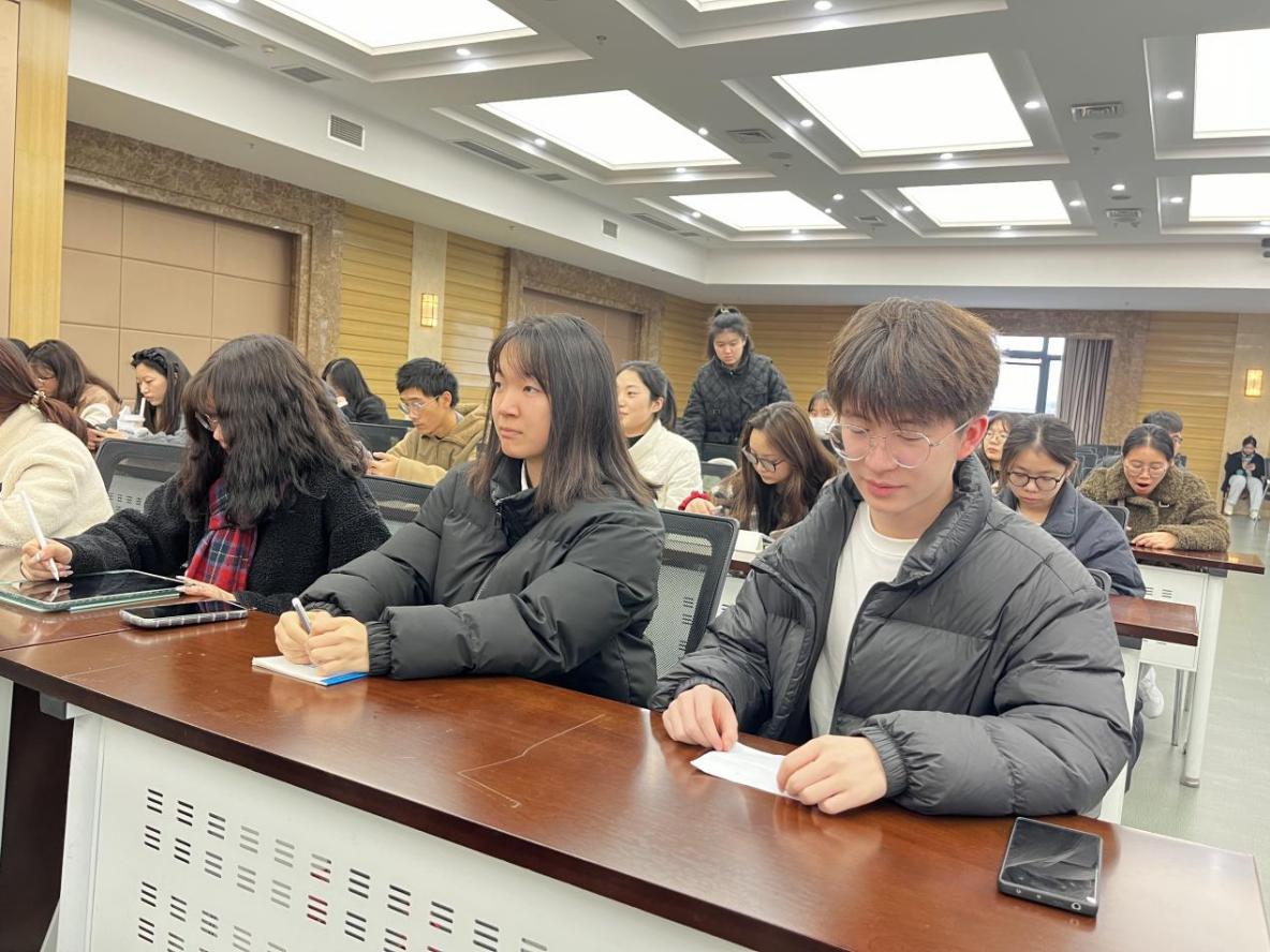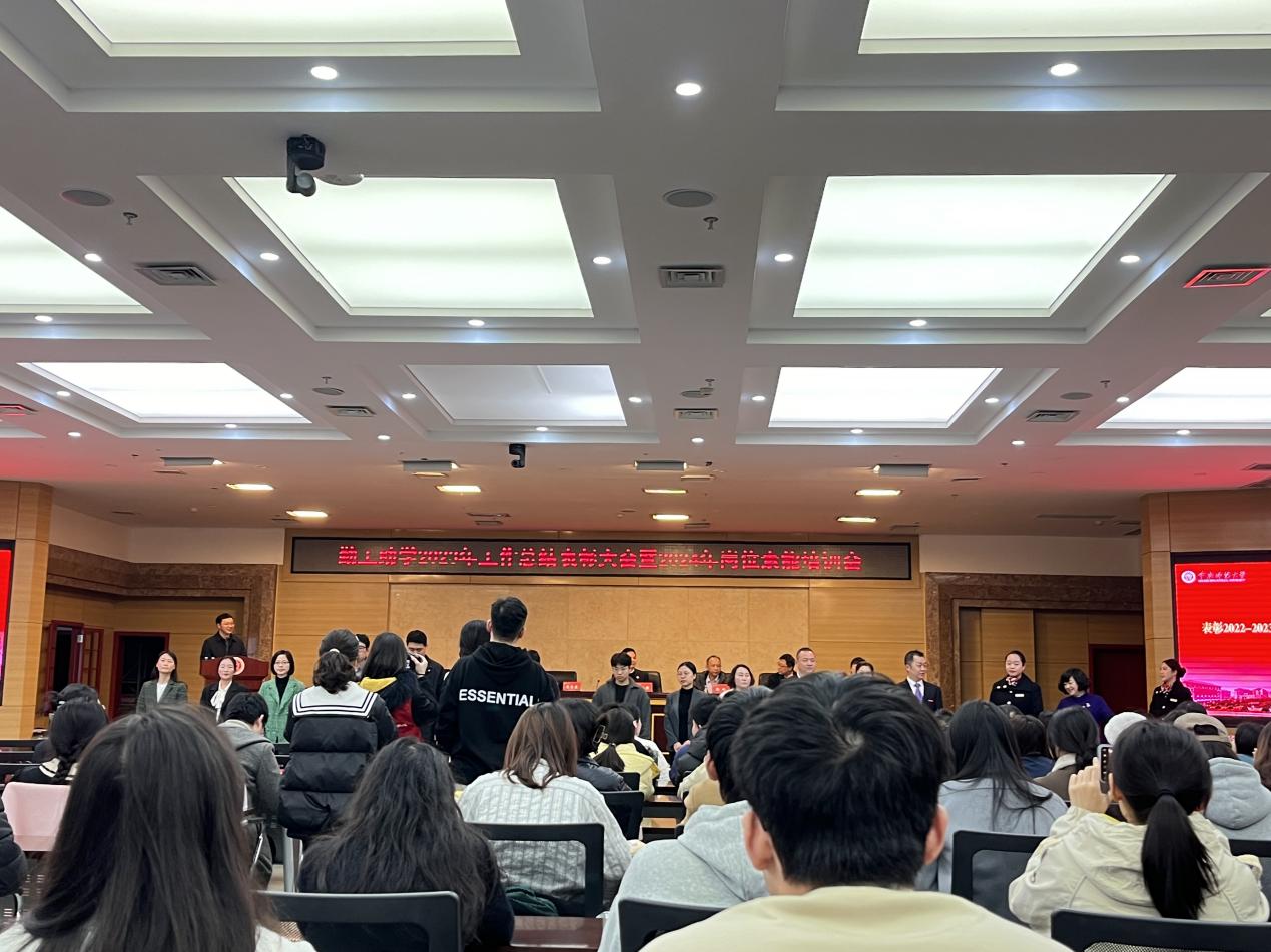 202312月14日下午2:30--5:30,美术学院资助专员闫杰老师带领勤工助学助理向源、杨溢、陈丝雨、江俊锋、吴盼盼参加了学校在博雅楼504举办的“勤工助学2023年工作总结表彰大会暨2024年岗位素能培训会”。