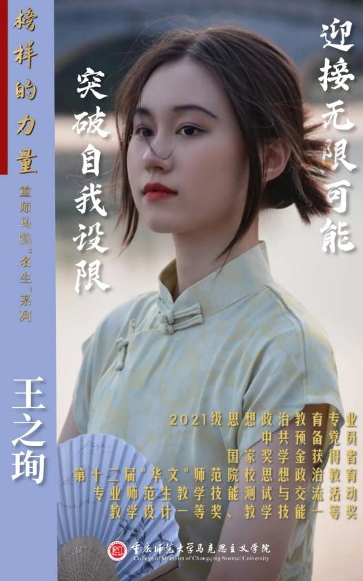 回忆过往,她谈到,早在中学时期,一个教师梦就在她心中悄然发芽。所以高考填报志愿时,她毅然选择了师范类院校。于是,怀揣着一个教师梦,她走进了重师的校园。她将目光放远,以全局视角思考大学四年,对大学各阶段有着清晰的规划和认识。在她看来,大一是适应与调整阶段,大二是目标初现与完成阶段,大三是全面发展和规划阶段,而大四则是奋力冲刺和总结阶段。如今,她已然度过了二分之一的大学生活。在大一、大二阶段,她不断突破自我、勇往直前,充分挖掘自身潜力,全面提升自我,这也为后来她在专业学习和教师技能上取得的佳绩做好了前期铺垫。正如她所说,“人生是环环相扣的”。在不同的阶段,我们都应目标清晰、脚步坚定地向好、向上发展自己,为成长为更优秀的自己做好充足准备。