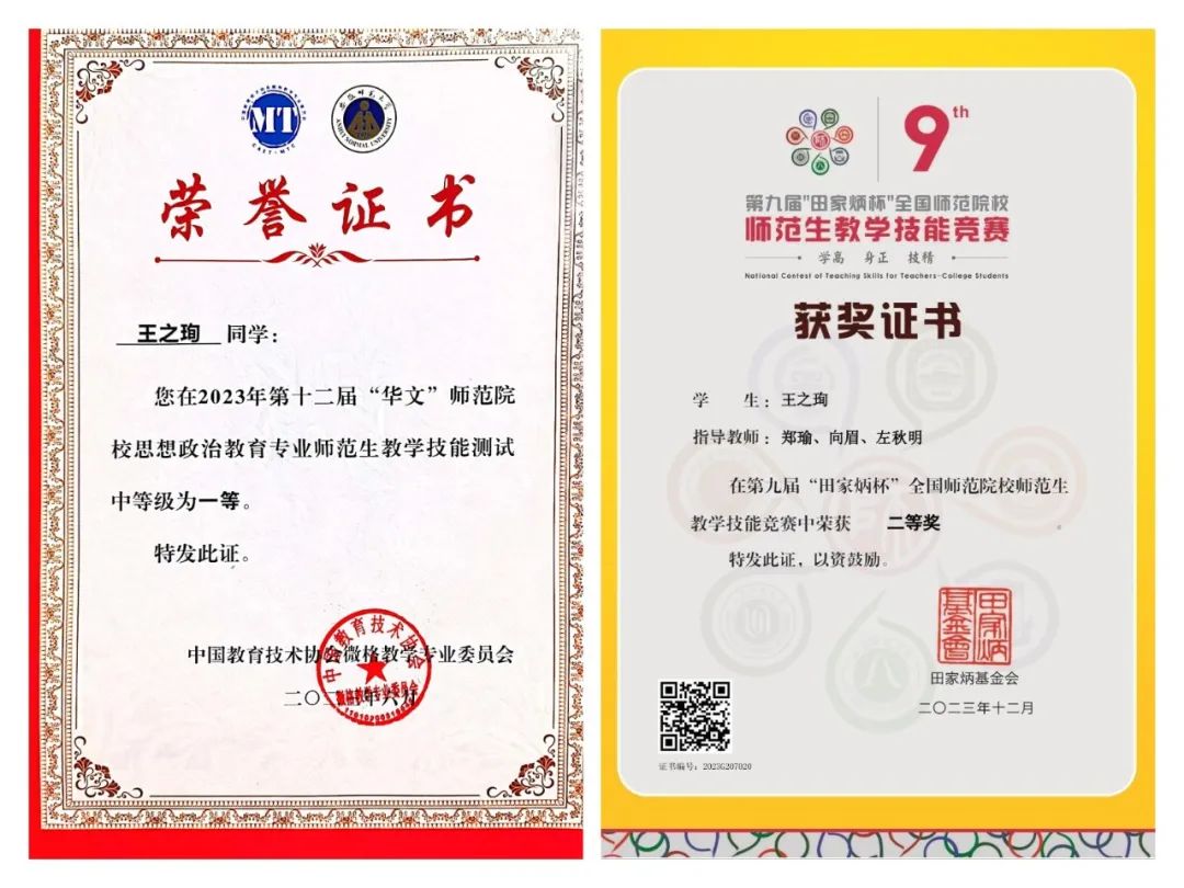 中共预备党员,国家奖学金获得者目前获四次校级一等奖学金,一次单项奖学金,获第十二届“华文”师范院校思想政治教育专业师范生教学技能测试与交流活动教学设计一等奖、教学技能一等奖,“田家炳”杯第九届全国师范院校师范生教学技能竞赛二等奖,获M88“三好学生”“优秀共青团员”等荣誉称号,现担任青年融媒体中心新闻通讯部部长。