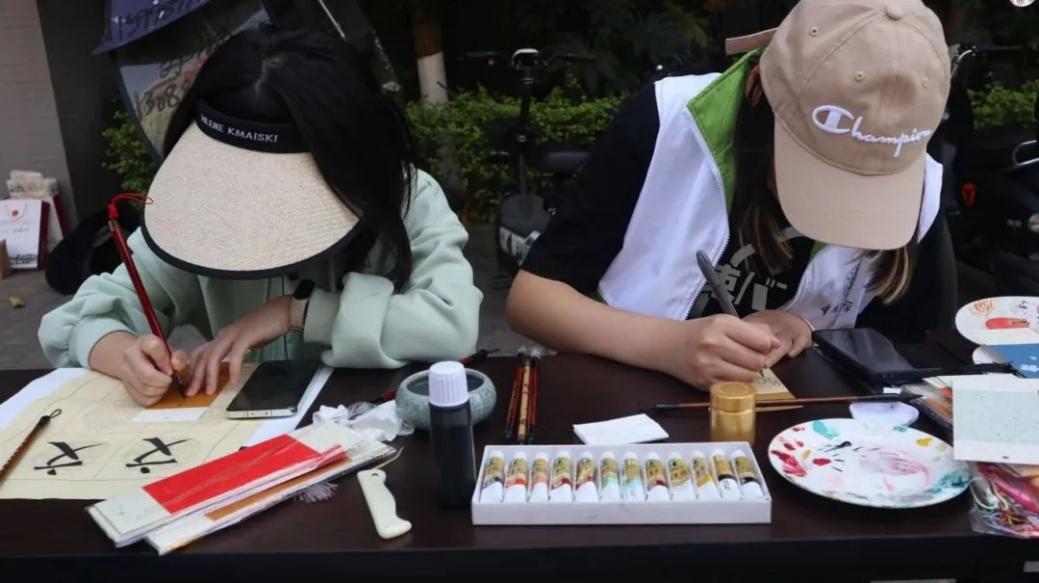 本次活动参与游戏成功即可获得抽奖资格,奖品有原创书法折扇、定制书法书签、书画书签等文墨轩协会的文创产品,充分调动了同学们的积极性和参与度。书法折扇上的书画皆由协会成员制作,画出了重师图书馆的美景;书签则由获奖同学定制内容,协会会员现场挥墨书写、绘画。每一笔,每一画,都有独特的肌理与线条;每一字,每一词,都有标致的结构与映衬。