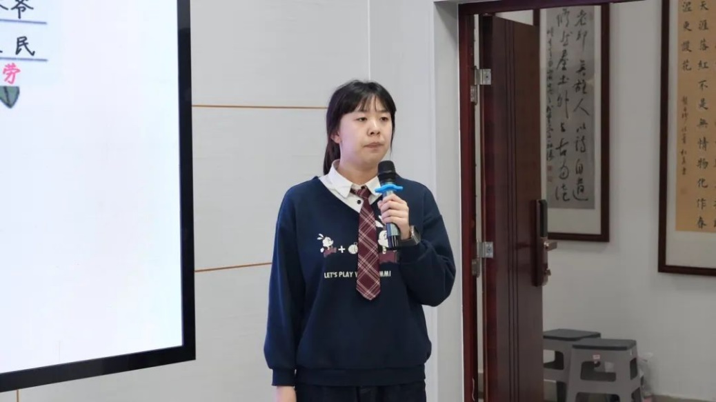 青马初级班的叶家玮同学从采访对象的背景和工作经历两个方面出发,提醒同学们不要陷入“专业不对口”中的误区,并鼓励同学们专注当下、提升实力、多去实习。紧着,青马初级班的陈洁同学以“热忱与坚持是成就一个职业的关键”为话题引出自己的绘画梦,分别从采访大纲、服装设计师日常、访谈报告三个方面向同学们讲解了自己的采访经历,激励同学们坚定初心,追求自己热爱的东西。随后,中国语言文学类5班的任佳蕴同学以家族职业树为引,向同学们介绍如何确定职业访谈的选题范围及人物,并通过分享她与老师的温情故事,表达自己将始终以真心、真爱、真情去启迪每一颗心灵,努力耕耘教育这片热土。本次活动由语文教研组长主持,按照确定课题集体备课-同课异构-互动交流四个环节展开语文组老师从语文学科特点出发,以生活实例为载体,以学生为本,面对同样的内容,采取不同的教学方法,运用不同的教学策略将语文学科核心素养有效地落实到了教学环节。