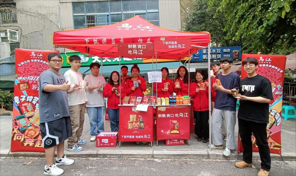 分享过程中,作为企业代表的毕业生同学们积极向在校生宣传推广自己应聘企业的产品“乌江榨菜”,分别从口感、味道等进行了详细介绍,并热情邀请路过的同学们品尝;同时,为使学生更加了解自己所在的企业单位,在场毕业生同学们还就涪陵榨菜集团的工作环境、工作氛围等进行了简要介绍。