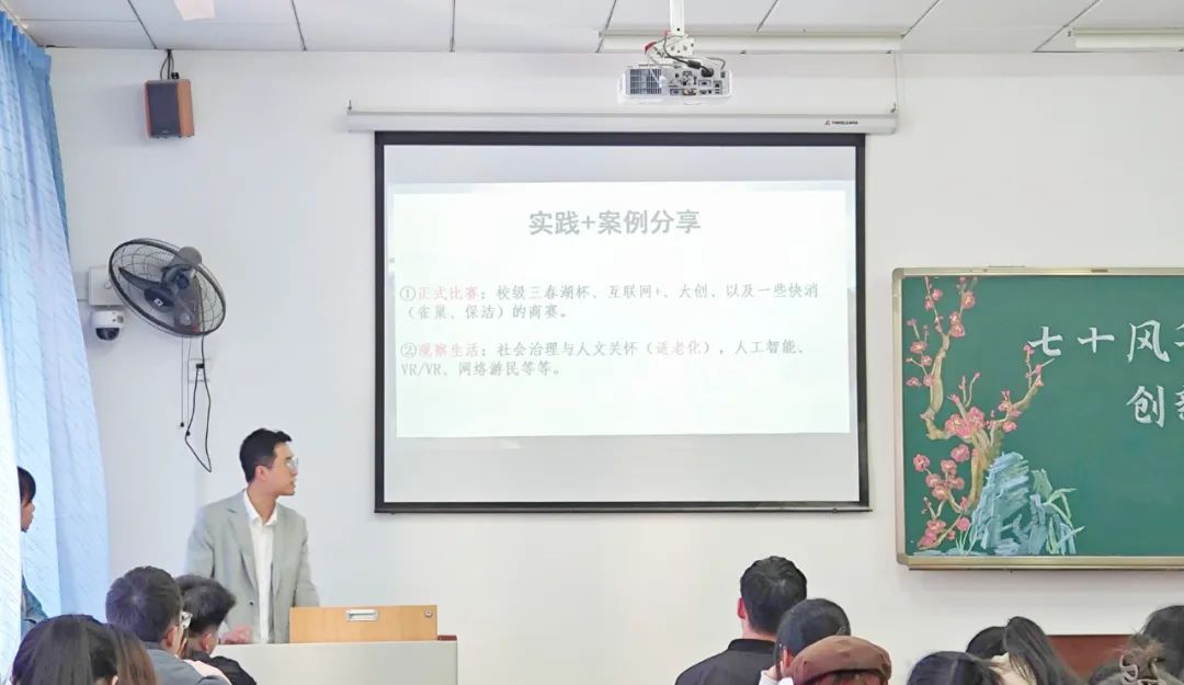 为深入贯彻科教兴国战略、人才强国战略、创新驱动发展战略,激发文学院学生的创新意识,搭建创新交流平台,文学院于2024年 3月28日 14时30分在砺志楼2306教室举办以“七十载风华正茂,创新不息谱新篇”为主题的科创赛事宣讲活动。文学院科创部指导教师、辅导员顾纹豪出席本次活动,文学院2022级、2023级的部分学生聆听学习。