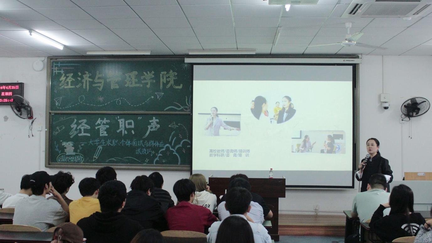 为进一步加强同学们求职面试能力,425日下午,经济与管理学院于砺志楼T2208开展大学生求职个体面试与群体面试应试技巧培训会,学院党委书记钟敏担任主讲人,2021级同学参与学习。