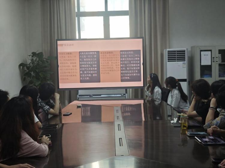 活动中,唐艺珊老师介绍了本次心理委员互助沙龙活动的主题和目的,强调了心理委员在班级建设中的重要性;在自我介绍环节中,在座同学依次表达了加入心理委员团队的初衷和期望。高年级心理委员梅雨涛、余锐热情分享了各自在沟通交流、支持同学、处理复杂情况等方面的经验和故事,阐述了在打开心扉、有效沟通以及与他人建立信任过程中方法和经验。同时,活动还设置了角色扮演和开放交流环节,在场的低年级心理委员们在情景演绎和沟通交流中热情分享着自己的心得和困惑,认真听取着唐艺珊老师和21级心理委员的反馈和指导意见,并在集体讨论的过程中寻找着解决问题的方法,进一步理解着沟通的艺术。此外,唐艺珊老师还鼓励心理委员们在今后的工作中继续探索、学习心理调适的技巧和方法,做好自我关怀以及对身边人的关怀,为学院心理委员团队建设贡献自己的力量,为同学们的身心健康保驾护航。