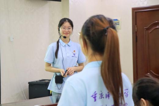 (图为志愿者邓雨萌进行授课 冯佳谣摄)