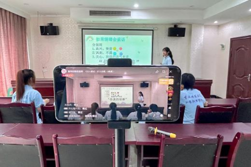 在随后的心理健康课上,志愿者邓雨萌创设了“情绪小侦探”的教学情景,充分调动了孩子们的积极性,引导同学们认识不同情绪的特点,并鼓励同学们用不同的肢体语言和语气语调来表达不同的情绪,促使“情绪”的概念在孩子们心中从无形到有形,表达从自发到自觉。课堂还注重孩子们辩证思维的培养,运用具体事例从“乐极生悲”和“穷则思变”的角度阐明了积极情绪与消极情绪的两面性,力求在通俗易懂的基础上启发孩子们的辩证思维。最后雨萌老师带领同学们一起思考如何应对消极情绪,将理论落实生根;同学们也积极在直播间分享自己应对情绪的小妙招儿。