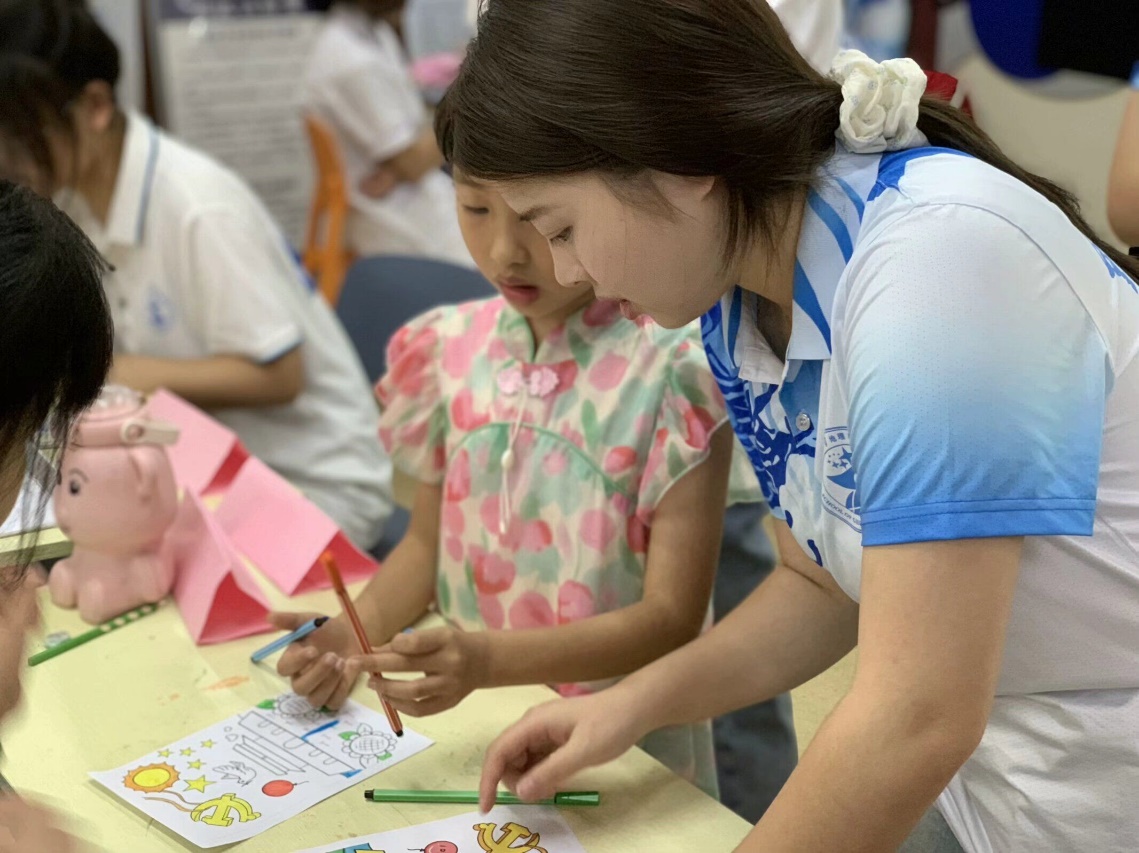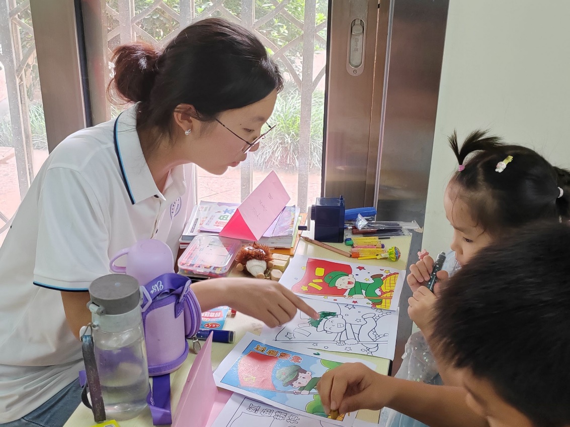 (图为团队成员引导孩子创作 胡文君摄)