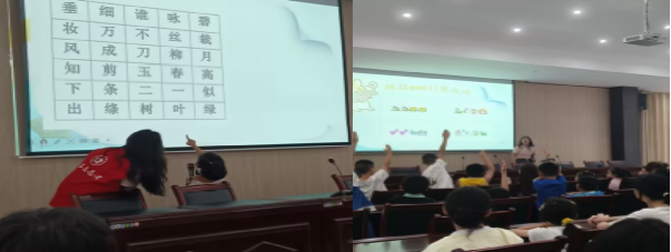 在宣传团史教育的同时,团队也注重增添活动的趣味性。本次活动第二项便是四个小游戏。第一个游戏为根据emoji猜成语。整个比赛过程中,小朋友们积极参与。虽然有一些小错误答案,但小朋友们不怕失败,多次举手回答。这个小活动锻炼了小朋友们的成语水平,提高了对中华优秀传统文化的认识。 第二个游戏叫做“木头人”,当主持人说“木头人”的时候,大家齐问“是什么”;当主持人回答“木”时,大家双手侧平举,呈“木头”字状;当主持人回答“头”时,大家双手抱头;当主持人说“人”时,大家不做任何动作,只需要说“到”字即可。这个小活动可以增强小朋友的反应能力以及及时应变能力。整个活动中,小朋友积极参与,认真。第三个游戏为打乱数字或者诗词,让小朋友找到所有数字并按照正确顺序读出或者读出正确且完整的诗词。这个活动可以提高小朋友的观察能力以及考察小朋友对故事的积累程度。最后一个游戏叫做根据描述画出自己所听到的图形构成一幅画。在这个过程中,让小朋友们知道了一个道理:不同的人对于同一种东西的思考以及想法是不一样的,有多种优秀的想法。