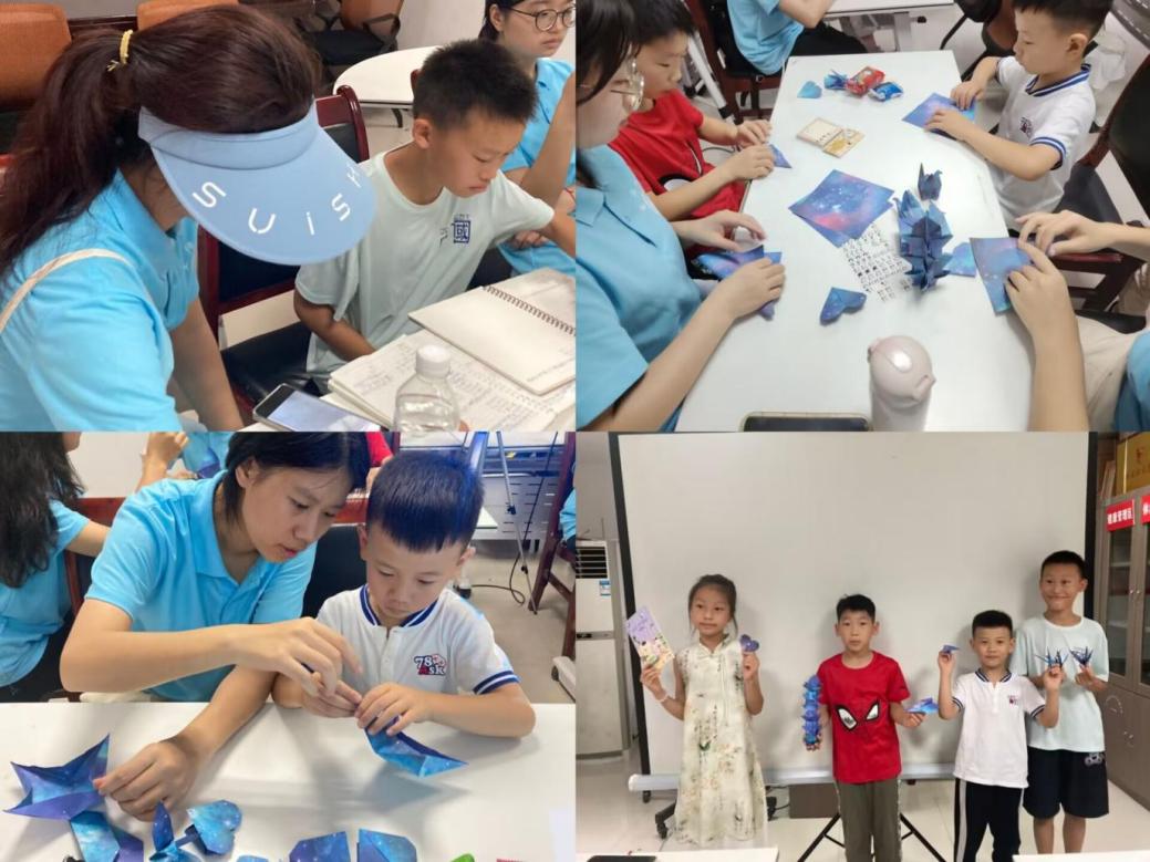 除了基础教学和环保活动外,基层服务队还精心策划了一系列与孩子们互动的游戏和文艺表演。她们举办了击鼓传花小游戏,鼓励孩子们勇敢表达自己的观点和想法;与孩子们一起跳欢快的舞蹈,用肢体语言传递着青春与活力;在折纸活动中,孩子们全身心地投入其中。在欢声笑语中,队员与孩子们建立了深厚的友谊,彼此的心灵得到了交融与升华。这一系列活动不仅丰富了孩子们的暑期生活,也促进了队员与孩子们之间的情感交流,展现了M88“学智辅导,教育同行”基层服务队在社区教育服务中的积极作用和创新精神。