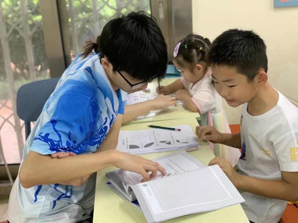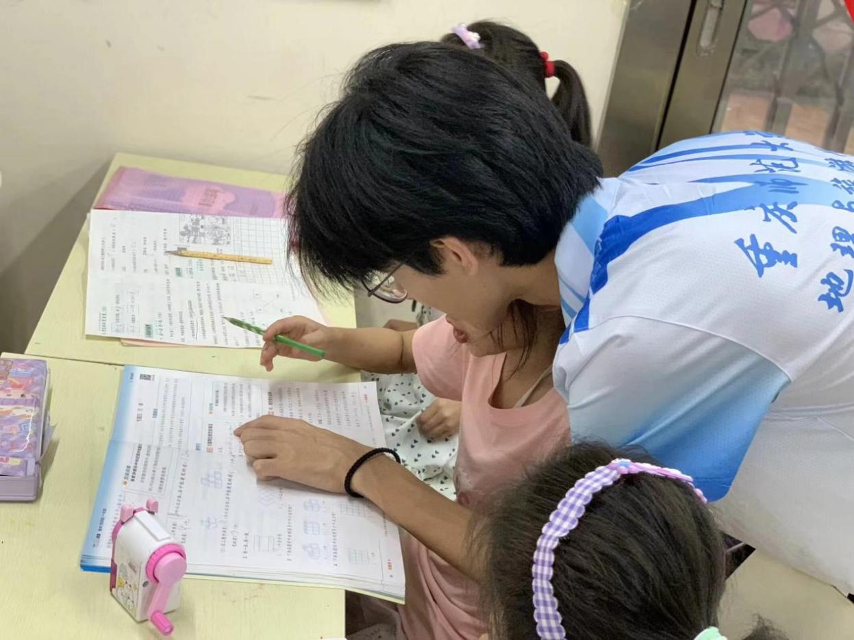 志愿者辅导小朋友写作业