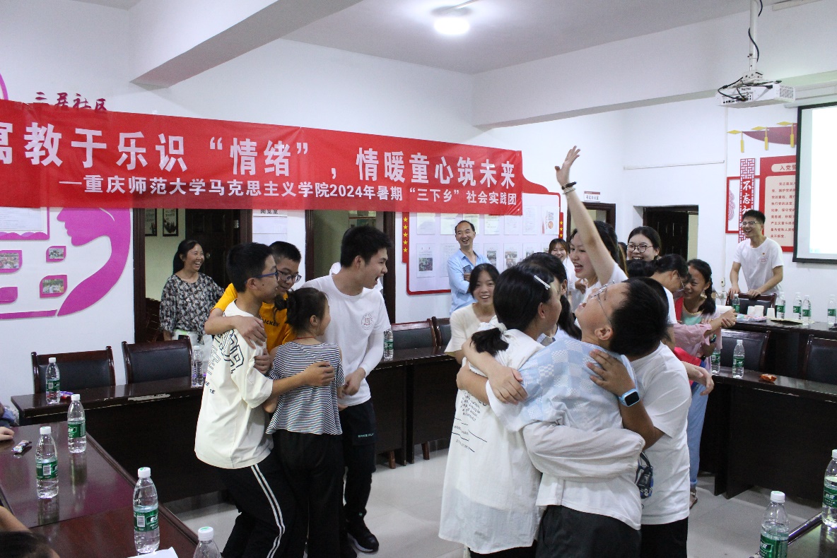 下午15时,实践团成员来到东溪镇三居社区开展“寓教于乐识‘情绪’,情暖童心筑未来”团辅活动。此次团辅活动围绕认识情绪和管理情绪展开,通过观看《头脑特工队》视频和实践团成员生动形象的表演,小朋友们形成了对各种情绪的初步认识。随后,实践团成员和小朋友们在“情绪猜猜看”“情绪接龙”等游戏中感受到了情绪稳定的重要性,在游戏中加深了对各种情绪的理解。最后,本次活动在自制情绪杯活动和情绪温度计中圆满结束。实践团成员充分运用自身专业知识,为社区青少年带来了一堂绘声绘色的情绪管理课。
