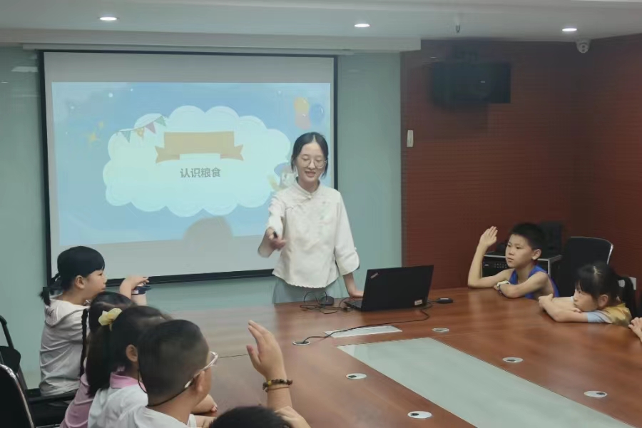 图为刘妙同学为小朋友们讲解节约粮食知识