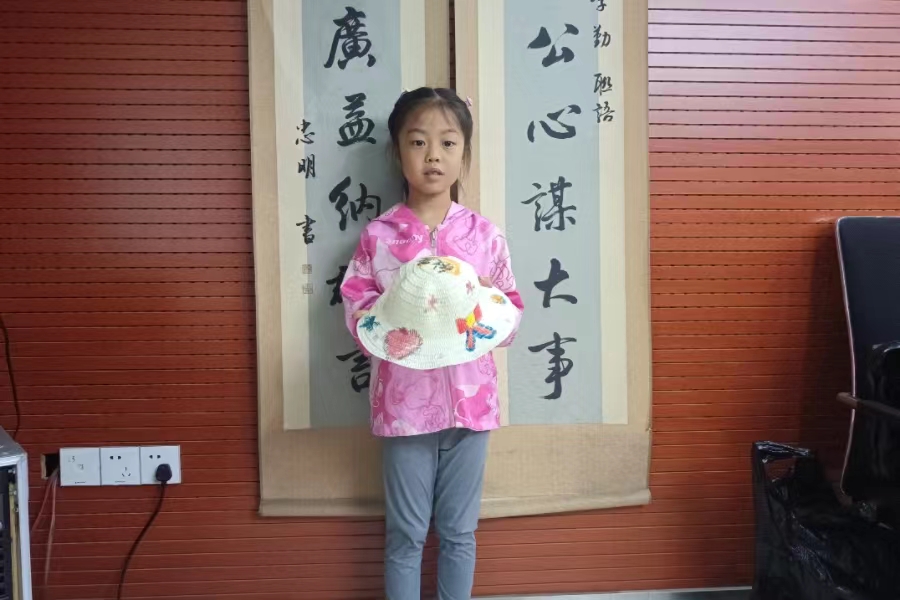 图为小朋友绘制草帽作品展示