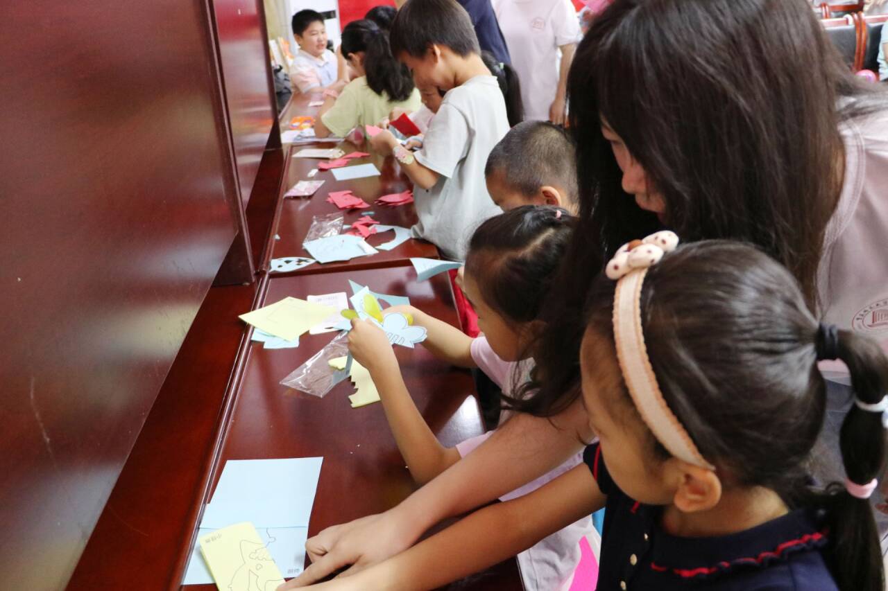 接着,实践团成员组织小朋友们共同参与了一场手工剪纸课,体验剪纸这一承载着中国深厚文化底蕴的民间艺术。在观看剪纸宣传视频、了解剪纸传统文化之后,小朋友们在实践团成员的引导下,根据给定的剪纸模板样式,结合自身独特的想象力和创造力进行剪纸作品的创作。随着一幅幅剪纸作品的诞生,小朋友们的脸上纷纷流露出满足和自豪的神情,实践团成员也纷纷为其鼓掌,现场氛围活跃。