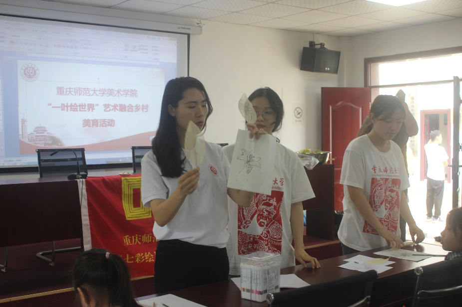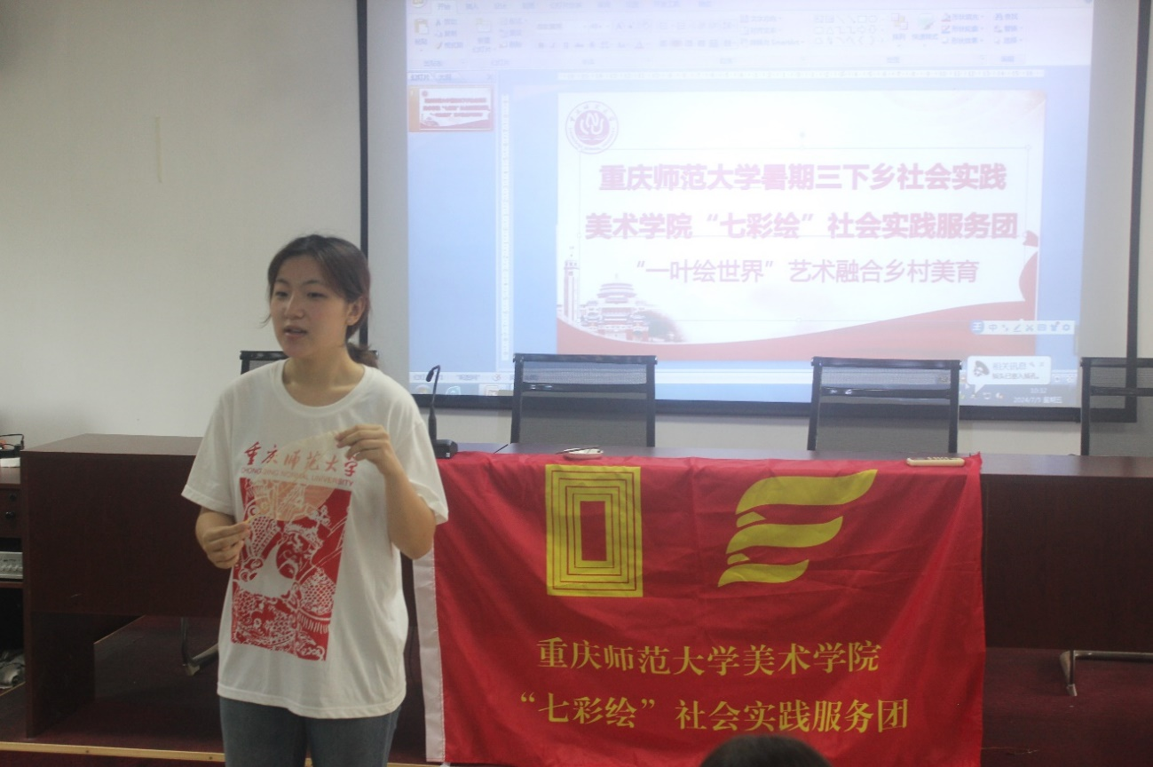 为大力弘扬中华优秀传统文化,积极推动非物质文化遗产活化传承进程,同时为乡村振兴赋能助力,让艺术之光充分照亮每一寸土地,美术学院“七彩绘”社会实践服务团-绘山绘水,‘渝’爱同行——北碚美育实践服务队于 2024年 7 月 5 日,在北碚区静观镇大坪村,悉心策划并成功举办了一场以重庆北碚“非遗叶脉画”为主题的乡村美育及艺术改造服务活动。在那不过巴掌大小的叶片之上,于青山绿水之间悠然回荡着文化的优美韵律,传统与现代元素的激烈碰撞迸发出绚烂的火花,为非遗传统注入了蓬勃活力。