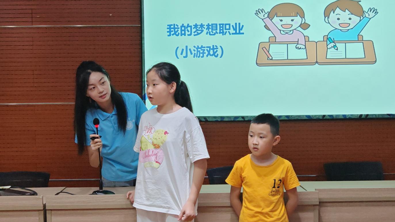活动伊始,志愿者们简明扼要地向小朋友们介绍了课堂的主要内容和大致流程。小朋友们在志愿者们的指导下,认真准备并完成了公众演讲台上的小朋友们个个神采飞扬,以稚嫩的童声清晰地表达自己的看法,积极展现自我风采。为了让小朋友们怀揣梦想、勇敢追梦,志愿者们精心组织引导小朋友们分组开展了“我来演示你来猜”的职业竞猜游戏。小朋友们轮流上前,生动地表演自己梦想中的职业,而组内其他小朋友则根据他们的表演来猜测职业。令人惊喜的是,小朋友们的职业理想已不再拘泥于“科学家”、“警察”这类神圣的职业,他们将环卫工人称作“城市美化师”、将“外卖员”称作“神奇的美食魔术师”。小朋友们关注更多平凡的职业,尊重劳动,展现了新时代少年儿童的崭新风貌,让志愿者们也深受教育和启发。