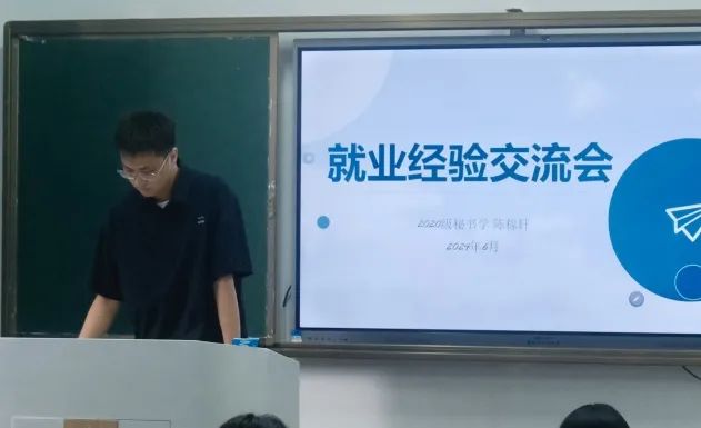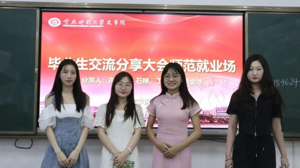 师范就业场毕业生交流会于6月20日16时30分在砺志楼2101教室开展,由汉语言文学(师范)专业石柳、丁海燕、向梦琦、蔡金池等优秀毕业生代表们担任主讲人。首先,蔡金池同学以自身求职之路为引,向大家详细分析了重庆主城教师编制考试的报考要求。她强调,同学们要尽早找准自我定位,明确职业方向。其次,丁海燕同学从编制、笔试、面试三个方面分享自己的考编之路。她强调同学们一定要注重文本分析能力、灵活应对面试难题,以自信自强的心态应对挑战。接着,石柳同学以当前就业困境为背景,鼓励同学们打破编制的限制,认识到非编制岗位同样值得追求。她强调树立目标意识、信息意识和竞争意识是突破就业困境的关键,并祝愿大家能够找到属于自己的不被定义的人生道路。最后,向梦琦同学针对备考公务员为同学们带来了精彩的分享。她着重从笔试准备、岗位选择、面试准备和必备素养四个方面展开,细致分析了考公应做好哪些准备工作,鼓励同学们多与身边人交流,明确个人职业规划。