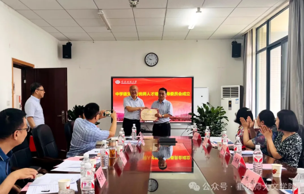 会上正式成立了由高校教师、一线中学教师、教研员组成的中学语文地方优师人才培养指导委员会,标志着文学院优师人才UGIS协同培养迈向标准化和体系化探索。杨如安副校长为委员会成员一一颁发聘书,并对中学语文地方优师人才培养提出新的要求。他强调优师培养应坚持小班教学,保证教学质量;紧贴一线中学需求,满足实践能力提升需要;课程建设要注重与本土文化的融入,培育乡村教育情怀;要注重现代化手段的使用,利用现代化资源培养一批思维、理念、观念都走在前沿的优秀教师。为此,杨校长提出要加强基础设施和制度的双重保障,建立健全“双导师”或“三导师制”,要深化认识、深化研究、深化合作,实现基础知识与实践能力的双夯实、双提高。