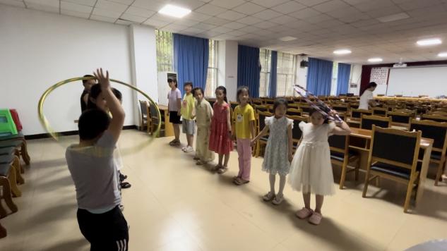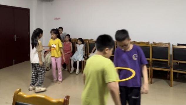 7月12日,志愿者们决定通过几个小游戏来继续深化小朋友们对团队合作的理解。游戏名为“呼啦圈接力赛”,小朋友们将两两组队,运用智慧与力量,将呼啦圈从起点安全地运送到终点。这个过程中,他们需要充分发挥创意,找到最佳的运输方式,同时也要紧密配合,确保呼啦圈在运输过程中不掉落。小朋友们在游戏中更加深刻地理解到,只有团结一致、共同努力,才能克服一切困难,取得最终的胜利。