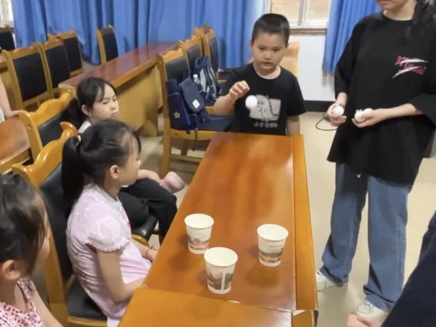7月10日,志愿者们设计了一系列既有趣又能锻炼能力的游戏。上午的投球游戏(即将乒乓球投入杯子中)深受小朋友们的喜爱。这个游戏不仅考验了他们的手眼协调能力,还极大地提升了他们的专注力和耐心。下午,志愿者们则组织了一场知识竞答活动。竞答内容涵盖了科学、历史、文化等多个领域,拓宽了小朋友们的视野与知识面。通过这场竞答,小朋友们不仅学到了许多新知识,还学会了团队合作与竞争中的友谊,为他们的成长之路增添了宝贵的财富