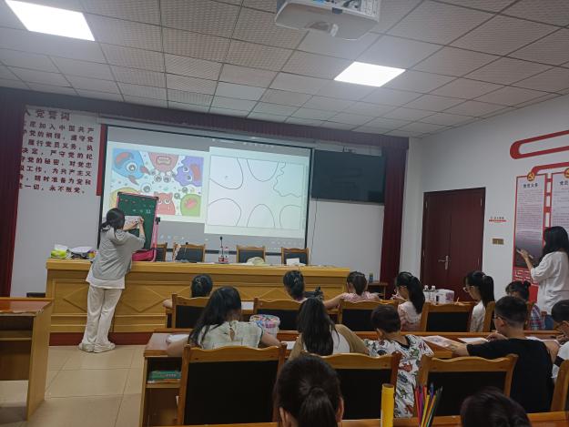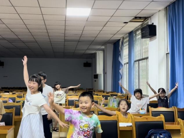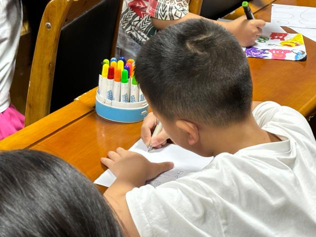 7月9日,随着上午作业的完成,志愿者们为小朋友精心安排了一系列简单的课间活动,这一环节帮助小朋友们缓解长时间学习带来的视觉疲劳,同时活动身体,促进血液循环,让他们的身心得到充分的放松。随后,迎来了美术课。在美术课上,志愿者们鼓励小朋友发挥想象力,用五彩斑斓的画笔在画纸上自由创作。