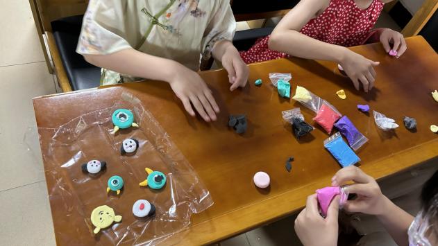 (图为粘土课堂 拍摄者:谢炎余) (图为小朋友们的粘土作品 拍摄者:谭晏婷)