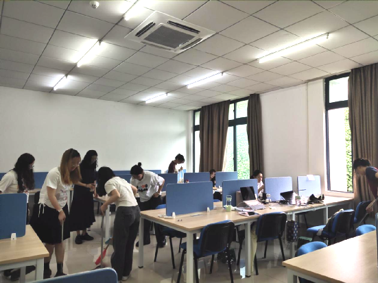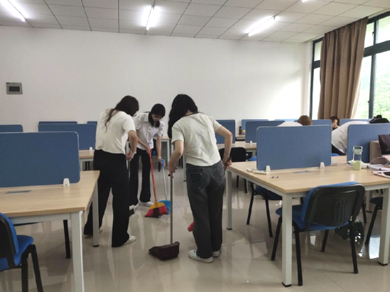 宣誓完毕后,研究生各支部委员按照划分的区域,带领党员们投入到紧张而有序的清扫工作中。党员们手持扫帚、拖把、抹布等清洁工具,认真细致地打扫着各个研究生自习室及学院楼道。他们不放过任何一个角落,无论是积灰的桌面,还是隐蔽的墙角,都被一一清理得干净整洁。在清扫过程中,党员们展现了高度的团队协作精神,互相协作,配合默契,共同为美化校园环境贡献着自己的力量。