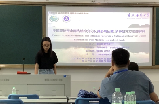 2022级研究生赵文艳参加了“流域水循环,地下水与水环境保护”分会场,做了“中国亚热带水库热结构变化及其影响因素:多种研究方法的解释”的专题报告,揭示了中国西南地区典型亚热带岩溶地下水补给型水库(大龙洞水库)的热结构变化转化过程,对水库水环境管理具有重要意义。