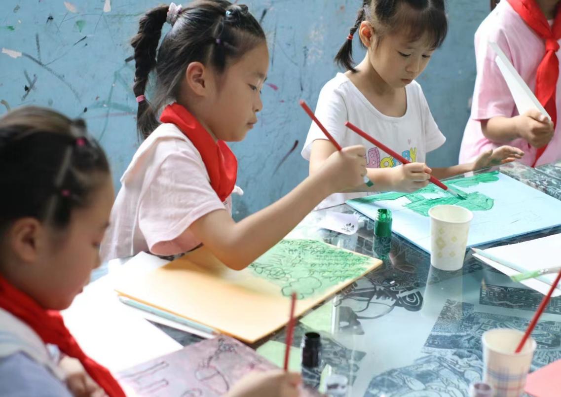 (小朋友在专心制作版画)