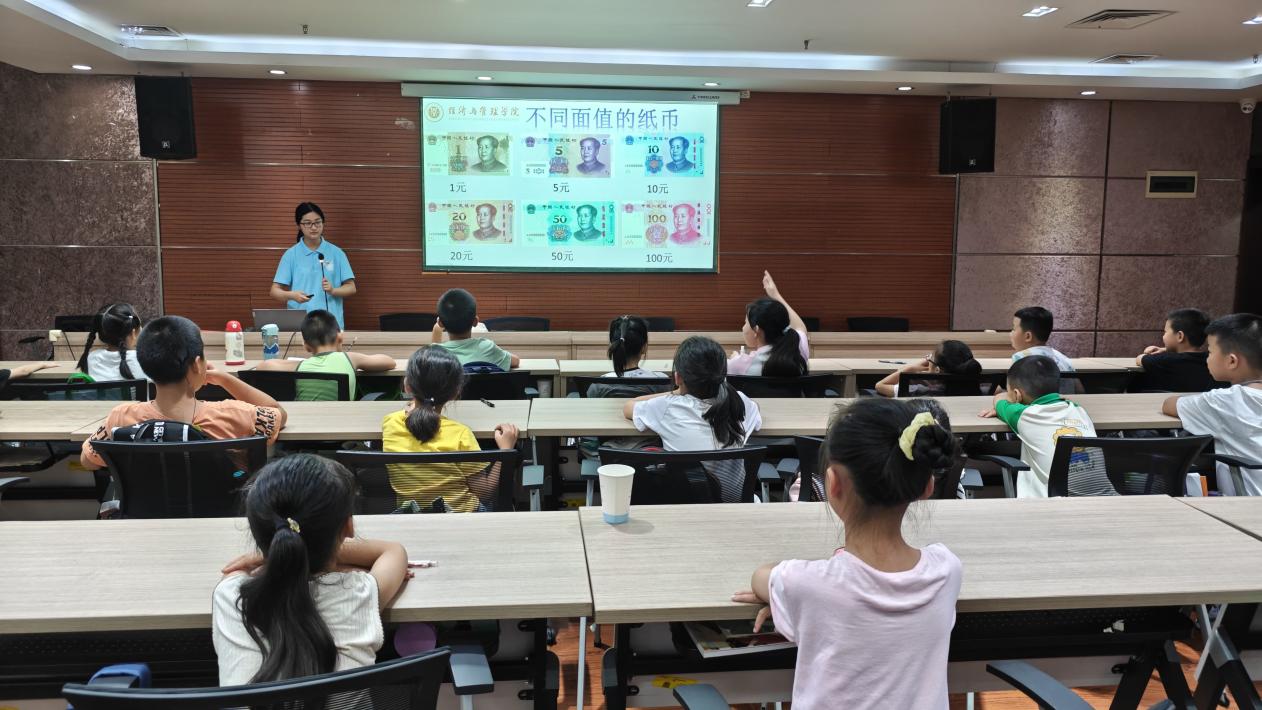 活动伊始,一场精彩的人民币知识讲座吸引了孩子们的目光。志愿者们以生动有趣的方式,向孩子们介绍了人民币的历史演变、防伪技术及其背后的文化寓意。随后,孩子们通过“货币换算小能手”游戏,亲自操作模拟货币进行换算,这不仅增强了他们对货币价值的认识,更在互动中锻炼了数学能力和决策技巧,为财商的培养打下了坚实的基础。